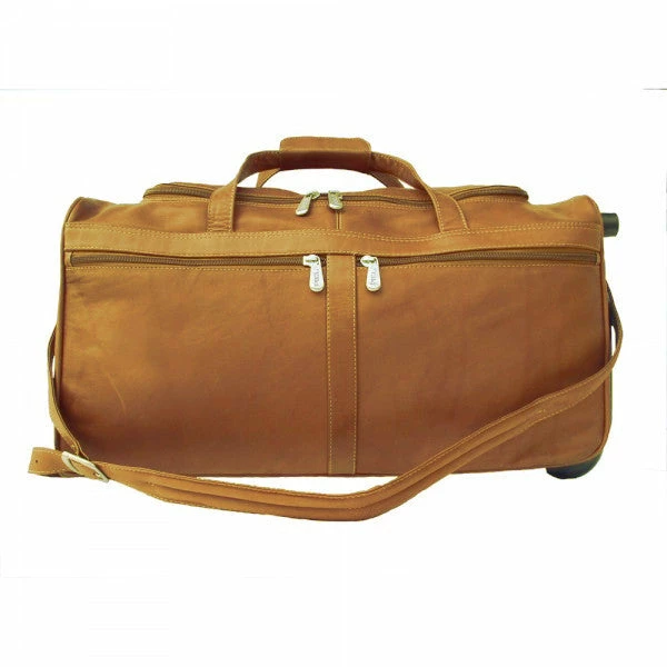 The Piel 22″ Duffel On Wheels features a u-zip opening to spacious main compartment. Two front zip-pockets, telescopic handle system, and roller blade wheels. Double handles and an adjustable / detachable shoulder strap.