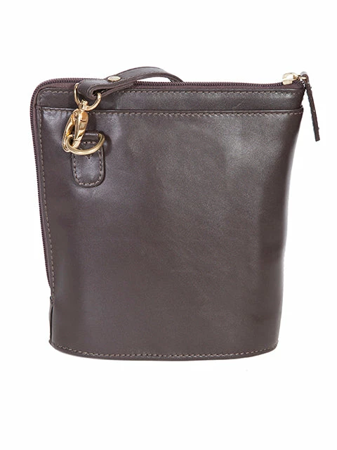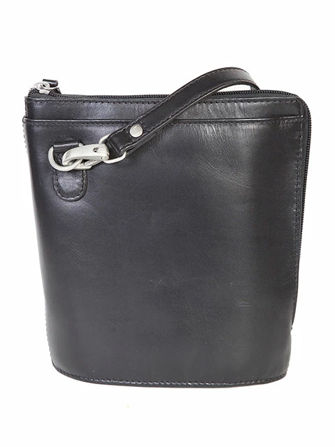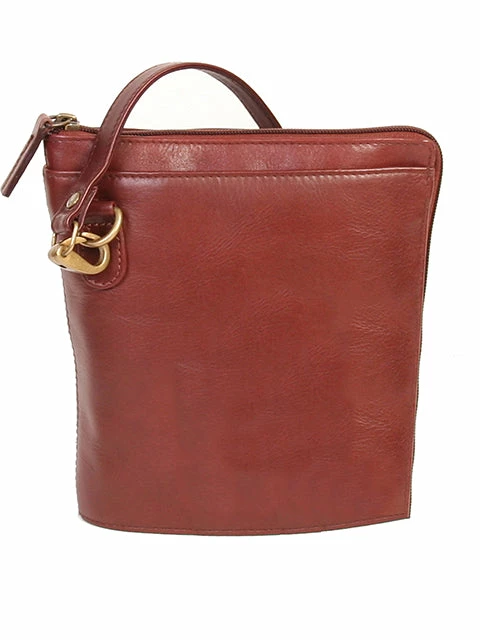 The Scully Leather Handbag with Expandable Side in Assorted Colors features a 2-way zip closure with an exterior open pocket on both front and back. The interior zip pocket and credit card slots provide room for all your necessities.