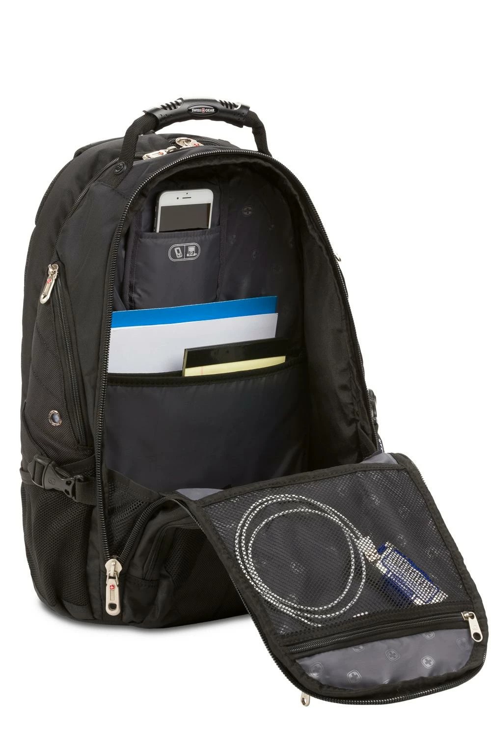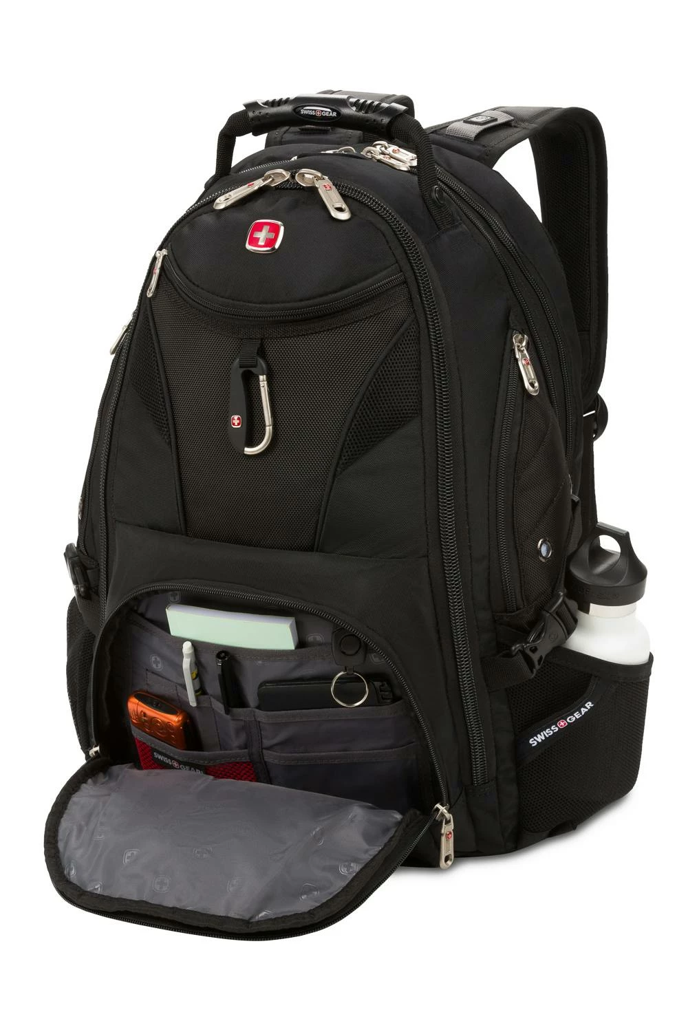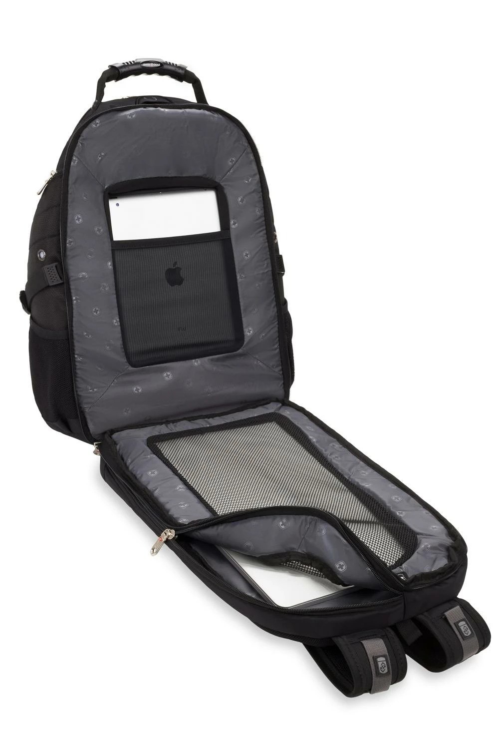 Pack all of your gear and then some in this extra-roomy, full-featured laptop backpack. The Swissgear 1900 ScanSmart Laptop Backpack is made from durable 1200D ballistic polyester fabric and is equipped with a large opening main compartment with rugged oversize zippers, adjustable side compression straps, a heavily padded back panel with Airflow ventilation technology, padded contour shaped shoulder straps with mesh fabric and built-in suspension as well as ScanSmart lay-flat technology for the ultimate in laptop-in-case TSA scanning for most portable computers up to 17” in size.