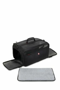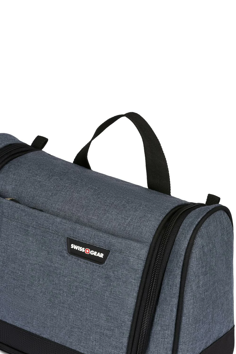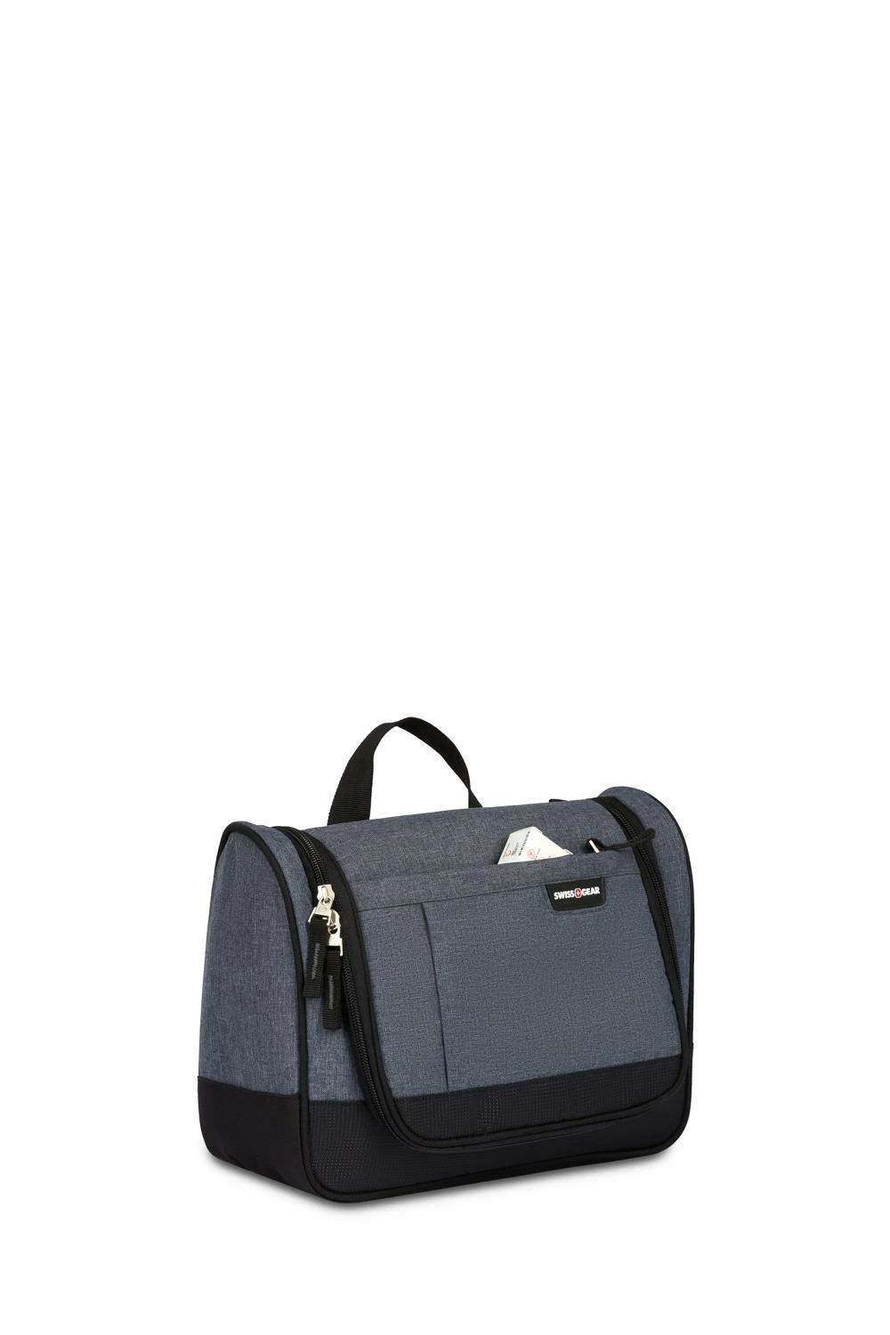 Embark on every journey with the SWISSGEAR 2379 Dopp Kit in tow. Its classic features will modernize the way you travel. Unzip its horseshoe opening and organize your travel-sized bottles of shampoo, lotion, and conditioner inside its internal elastic strap system and integrated zip pocket. Lay smaller things within its center compartment, which contains a mesh barrier to keep liquids from spilling over. And find two convenient side slip pockets for your razor and other small but vital necessities. Take advantage of its large internal mesh pocket and built-in hanger to hook your travel kit anytime you need to quickly freshen up for the day. Put its front pocket to use while on-the-go and slip it inside your SWISSGEAR backpack or grab its durable webbed handle for at-ready convenience.