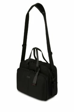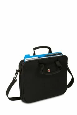 This handsome, fully insulated Swissgear lunchbox features a large main compartment with a lockable U-shaped zippered opening, a zippered front compartment for extra items, an adjustable clip-on shoulder strap, and a top carry handle with breathable mesh lining.