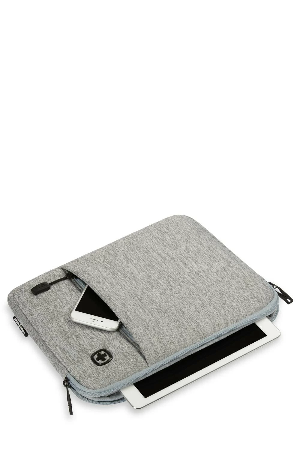 Store your full size laptop and other devices safely and securely with the Swissgear 2689 13 inch Padded Laptop Sleeve. This soft-to-the-touch electronics protector is made with double-knit stretch nylon that feels great in the hand.