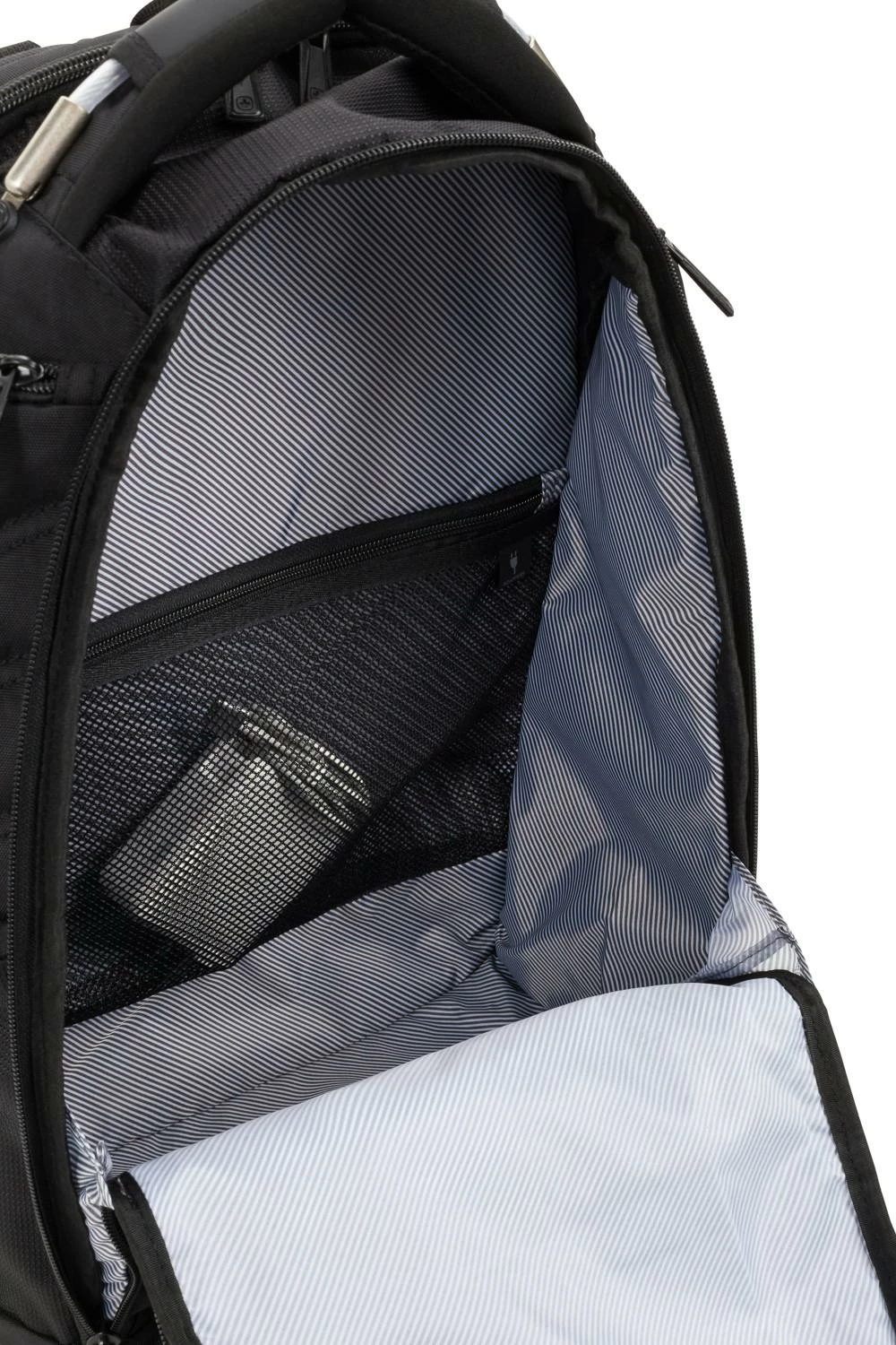 An ample main compartment integrates a mesh adapters zip pocket for cords, chargers and other tech accessories. While weaving through airport traffic, grab a cool drink from its side insulated cooler department and store snacks inside side double zip pockets. Mesh straps and a signature Airflow panel alleviate discomfort on your back and shoulders. Or slide its add-a-bag sleeve over your favorite roller for hands-free moves.