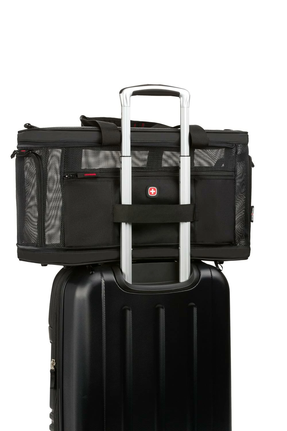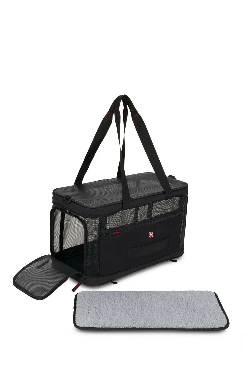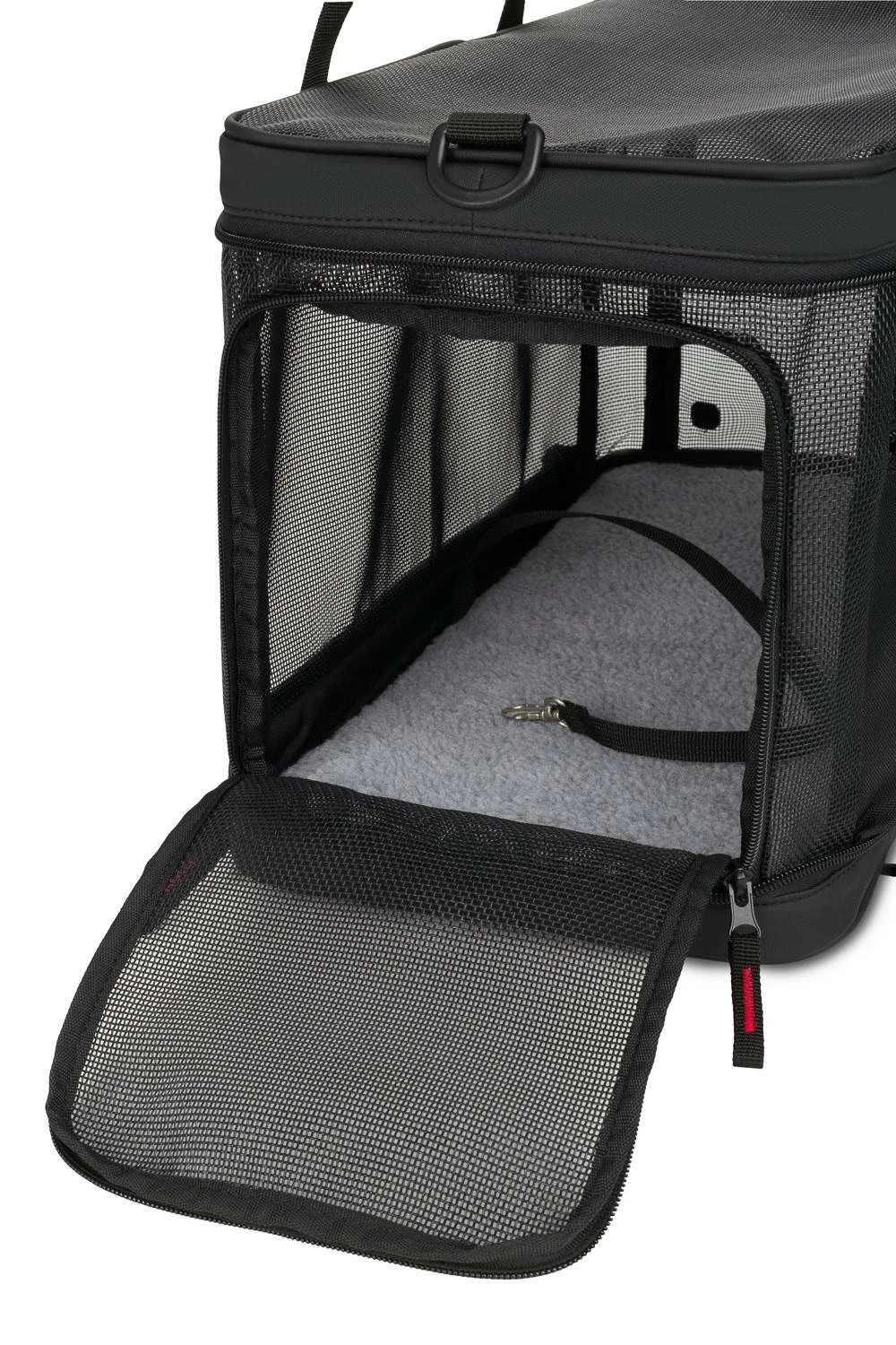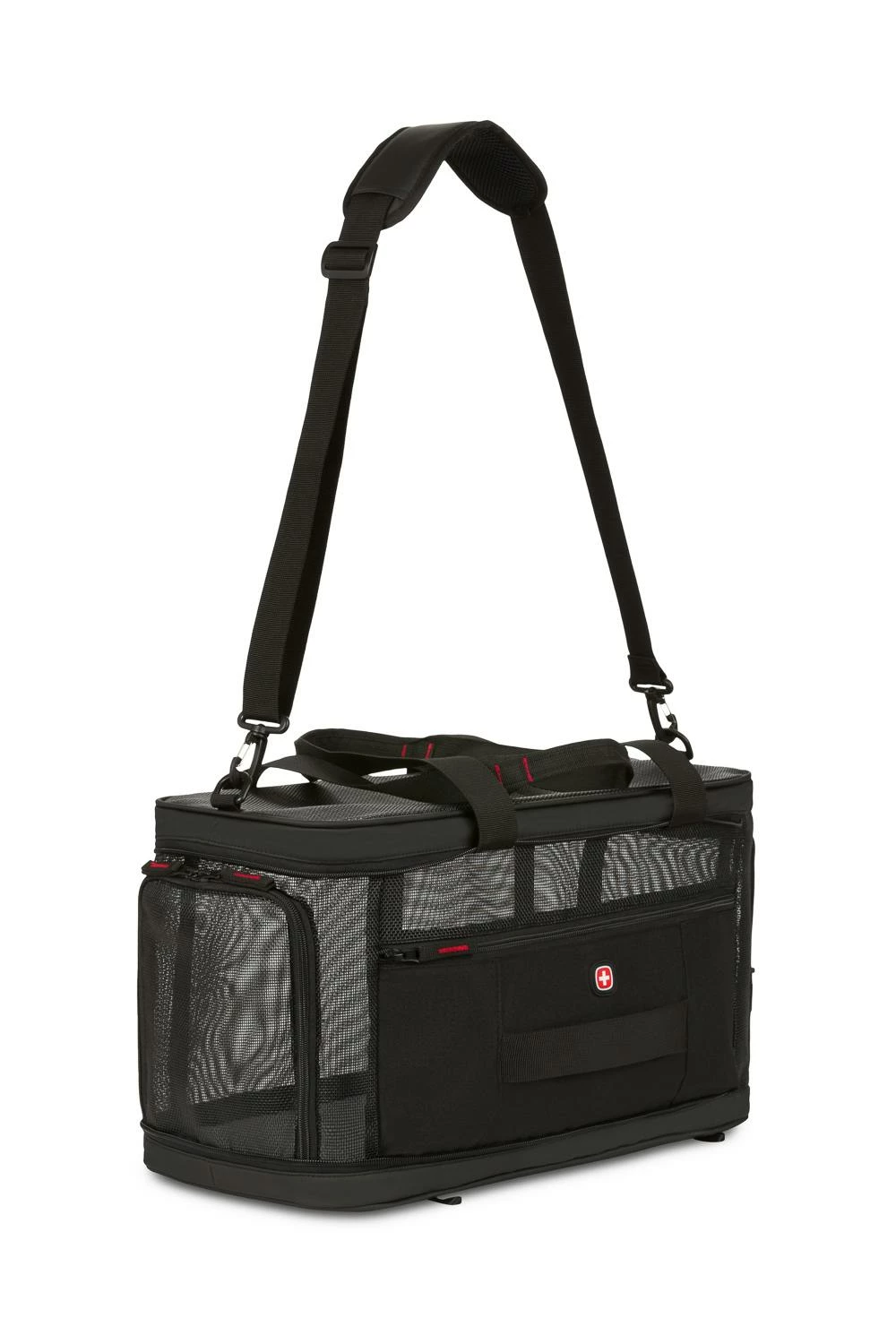 Equipped with an innovative, crush resistant design that also collapses when not in use for easy storage, this pet carrier absolutely lives up the Swissgear reputation of innovation and quality. The 3328 Weekender Pet Carrier is designed with four corner pillars that help keep the carrier perfectly shaped while in use. The net result is a super-spacious interior with the carrier’s ceiling fully extended to maximum height throughout its journey. And when you get to your destination, simply pivot the pillars out of the corners to allow the carrier to lay flay and neatly tuck away under a couch or bed until next time.