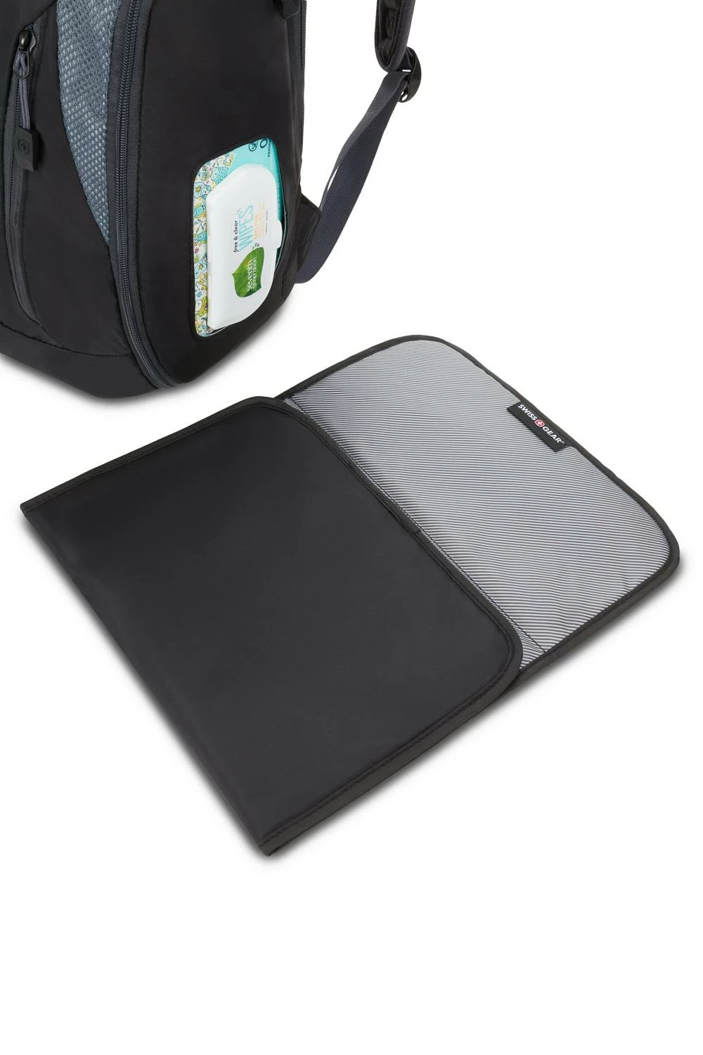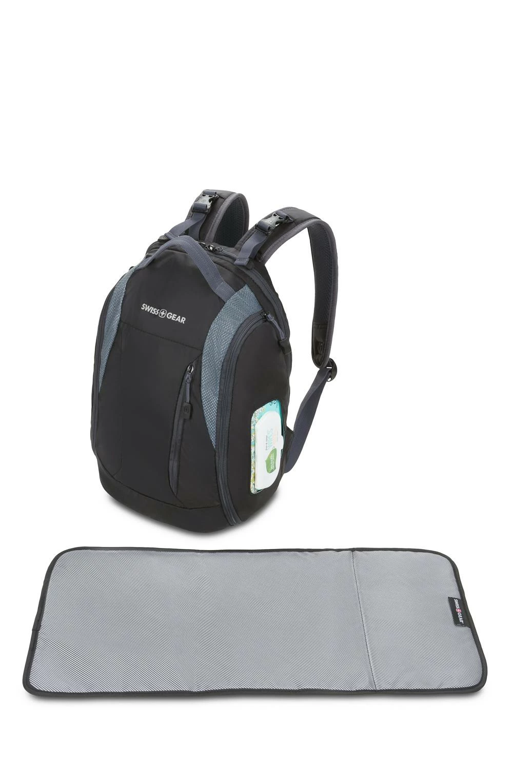 Take on your next adventure in life with your bundle of joy in tow and all of their necessities conveniently packed away in the SWISSGEAR 3530 Diaper Backpack. Constructed of durable polyester fabric, this bag comes equipped with a side baby wipe pocket, a large capacity, zippered insulated bottle pocket, and a front quick-access pocket for items needed on the go.