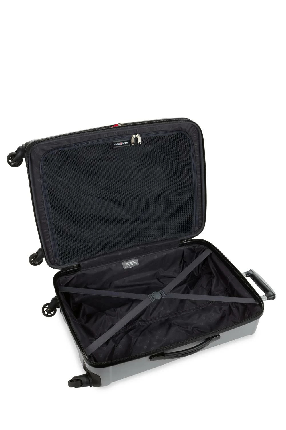 Introducing the lightweight Swissgear 3750 23” Expandable Hardside Spinner Luggage. Made of a durable ABS material, this hardside luggage features a push-button locking retractable handle and four multi-directional lightweight spinner wheels for easy maneuvering around the airport.