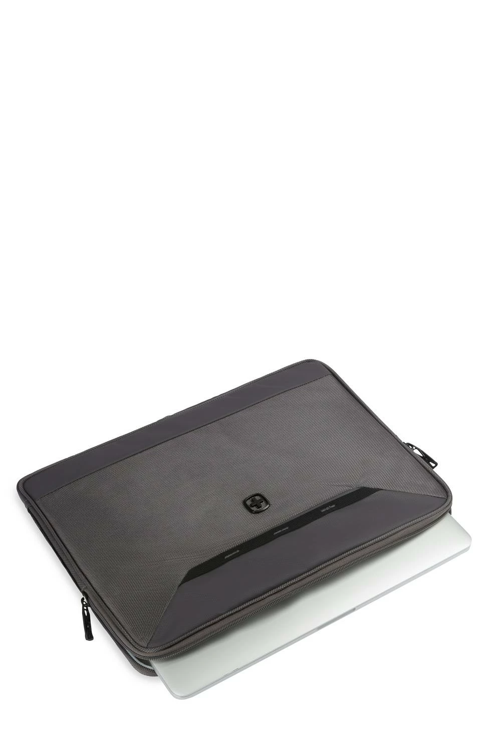 Store your full size laptop and other devices safely and securely with the Swissgear 2689 16 inch Padded Laptop Sleeve. This soft-to-the-touch electronics protector is made with double-knit stretch nylon that feels great in the hand.
