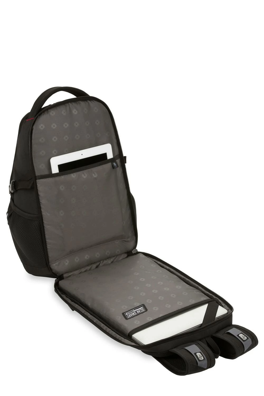 Take strides toward seamless commutes with this Swissgear 3988 ScanSmart Laptop Backpack, a more compact version of the highly touted 1900 ScanSmart backpack. This urban bag embodies clever functionality via a back ScanSmart compartment that fully unzips and lays flat, so you can scan your 13” laptop and tablet at airport TSA without taking your devices out.