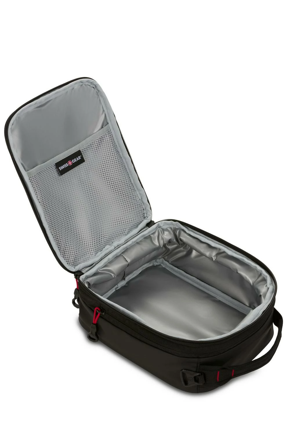 Shake up your regular lunch routine. Big or small, now you can bring it all to school or the office in the SWISSGEAR 3998 Expandable Insulated Lunch Bag. Simply unzip the side panel of the lunch bag and capacity grows by 35% when you have a larger casserole dish for this more important meal of the day. Constructed of a durable polyester fabric, this insulated lunch bag is lined with an easy to clean Microban antimicrobial lining and is equipped with an interior stretch pocket for smaller items. Other features include a front stuff pocket for bulkier items, such as a water bottle, and a rugged webbing top handle for easy toting.