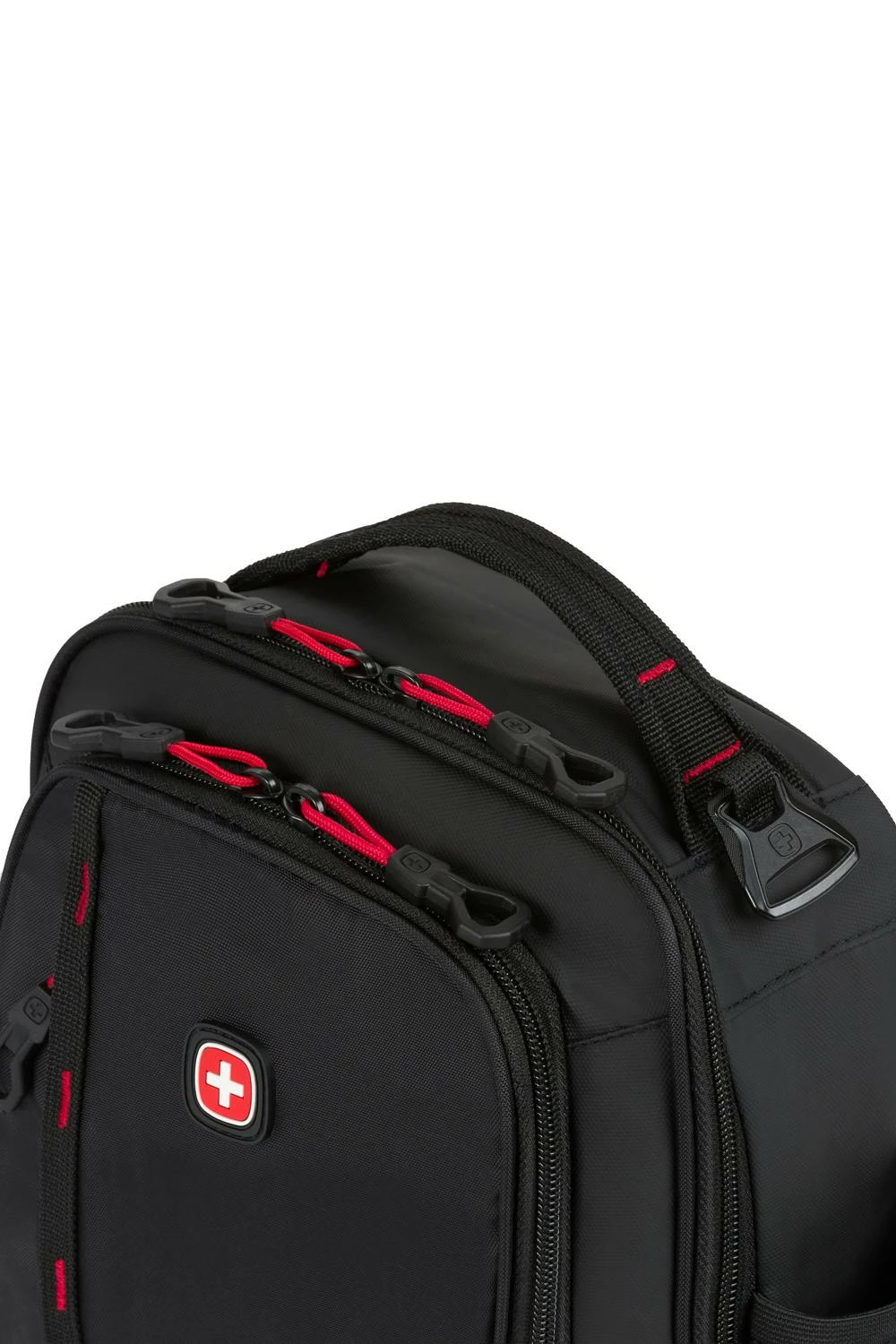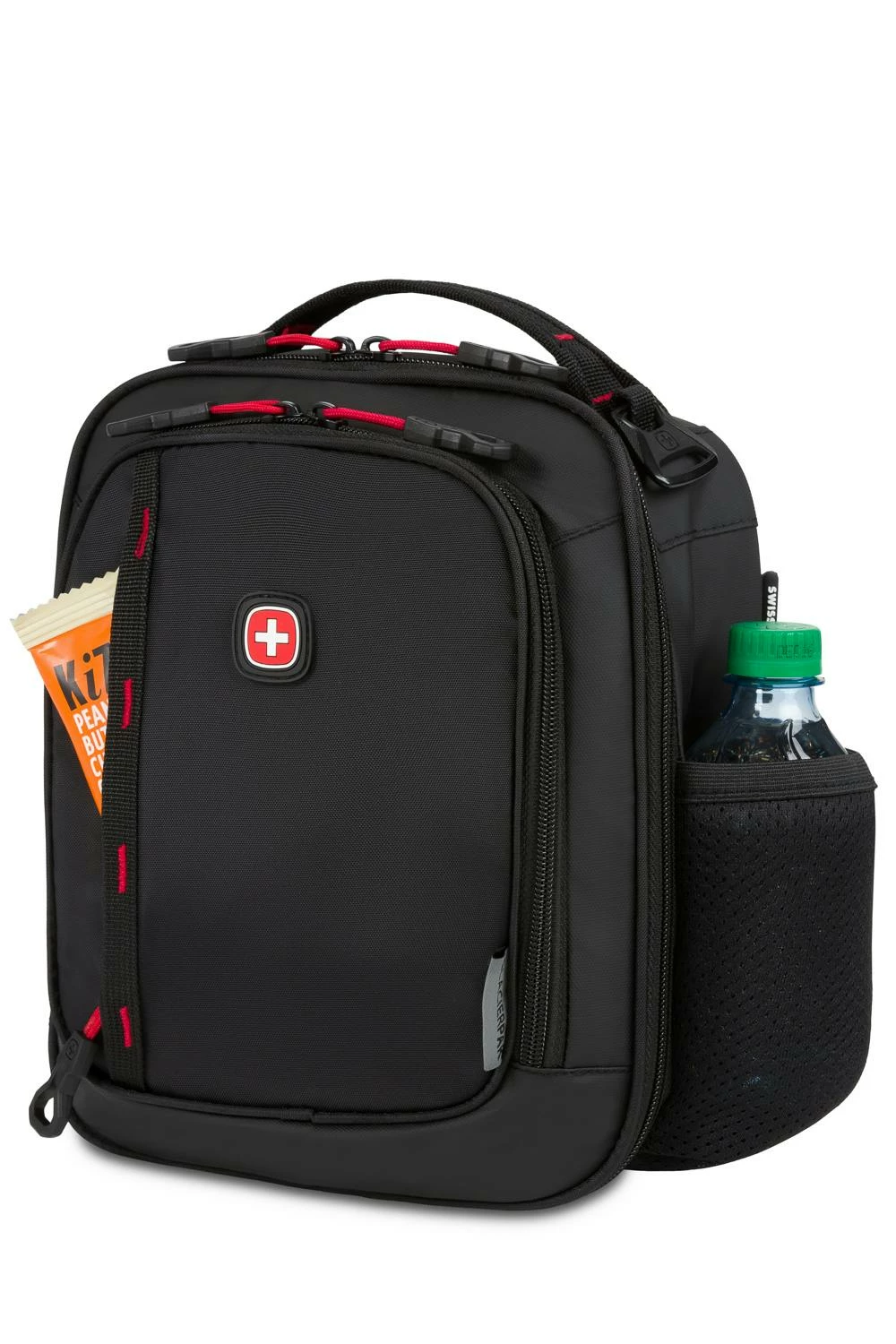 Never skip another lunch with this SWISSGEAR 3999 Insulated Lunch Bag. This lunch bag is lined with a Microban antimicrobial lining that’s easy to clean and keep germ free. Featuring an insulated, large capacity main compartment for larger items, as well as a handy second insulated U-pocket perfectly sized to fit your sandwich or other thinner items you don’t want to get crushed along the way. Other features include a front vertical zip pocket, an internal stretch pocket, a side water bottle pocket, and a rugged webbing top handle for easy toting.