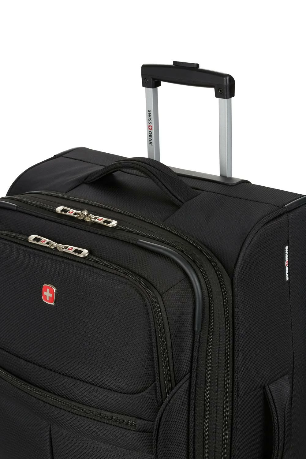 Get away in confidence with the Swissgear 4010 Spinner collection’s 23” Expandable Spinner Luggage. This sophisticated looking luggage collection comes equipped with a rugged locking retractable handle, lightweight lift handles, and four lightweight 360-degree multi-directional spinner wheels for the ultimate in maneuverability. Constructed of abrasion-resistant polyester fabric, other features include adjustable clothing tie-down straps, multiple internal pockets, and two front storage pockets for last-minute additions.