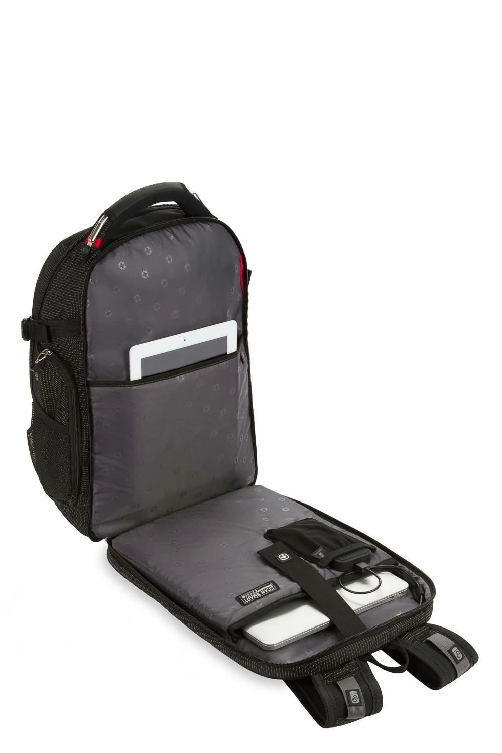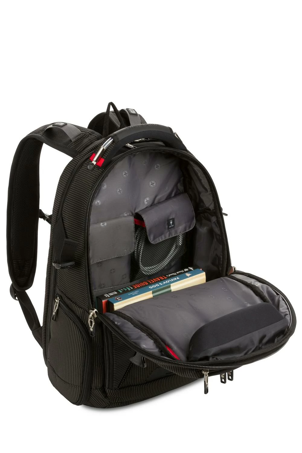 When you’re ready to move up to a different league of organization in a backpack, this is the one you want to strap on for size, the Swissgear 5358 USB ScanSmart Laptop Backpack. Encased in durable, abrasion-resistant polyester fabric, this pack has a surprise around every corner.