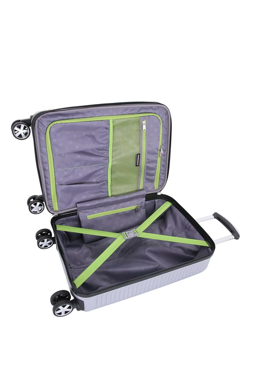 Become acquainted with this savvy Swissgear 6399 18” Expandable Hardside Spinner carry on. Featuring a patented pop-out cup holder that folds flat when not in use, this bag is the perfect combination of innovation and durability. Constructed of a virtually indestructible, molded ABS hardshell in a rich diamond pattern along with a large oversize main zipper, this luggage can take the rigors of everyday travel.