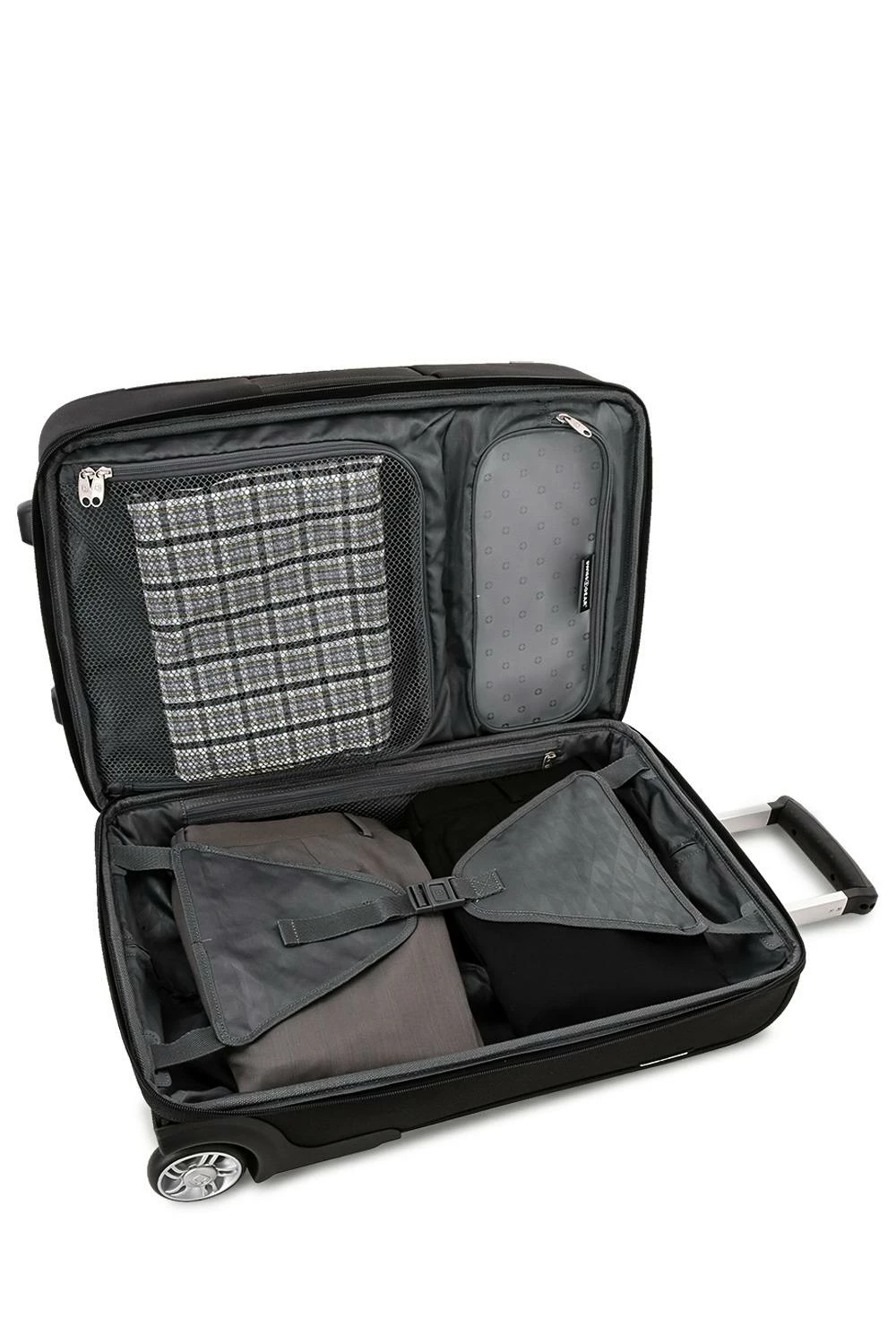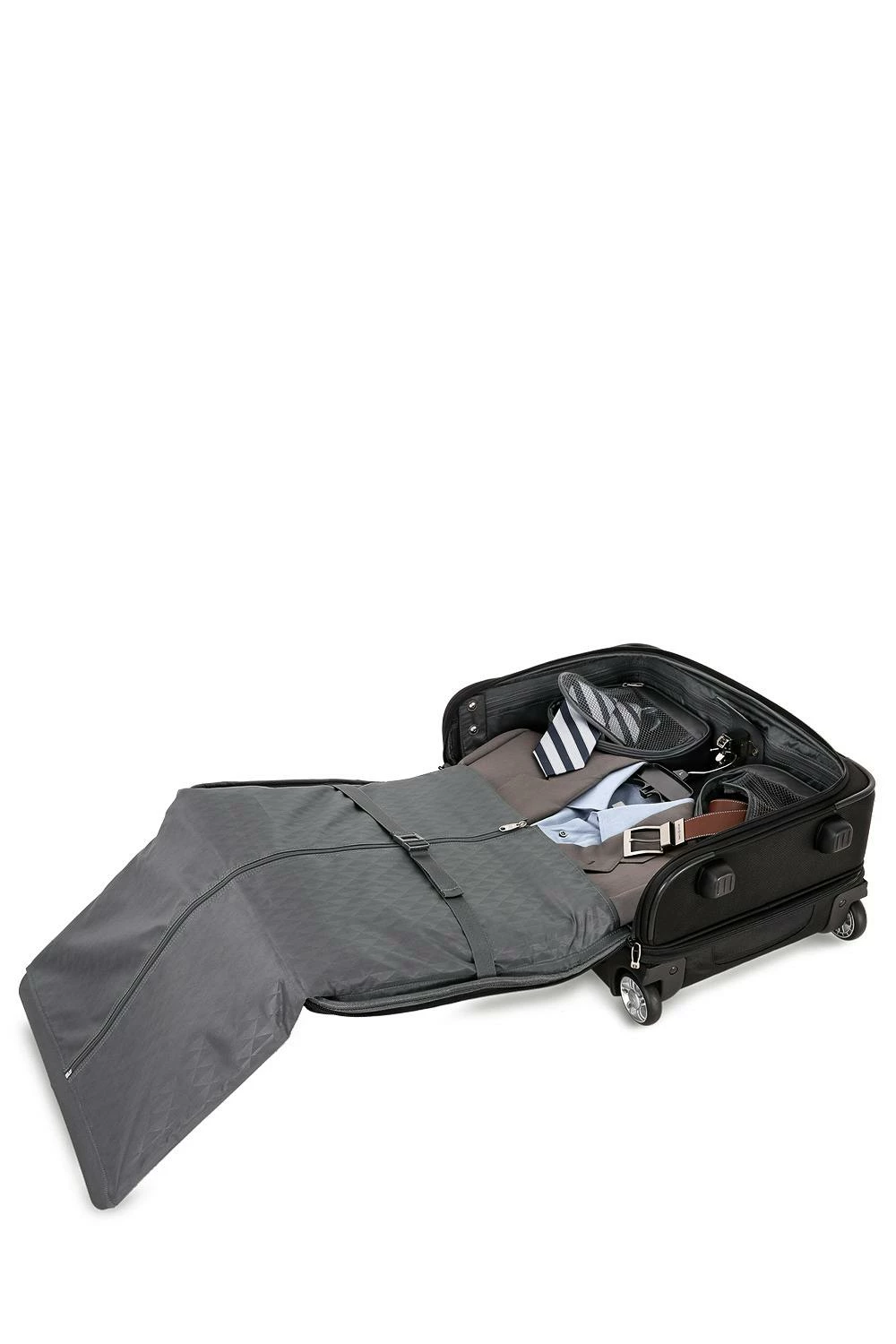 Whether embarking on a business trip or a weekend escapade, the Swissgear 6590 20″ Garment Upright Carry On Wheeled Luggage boasts superb organization features that will have you looking forward to packing. It features a tri-fold garment bag tucked in its belly, which provides efficiency and protection. In addition to the crease-proof pouch, the case has a separate clothing compartment that comes with adjustable compression panels.
