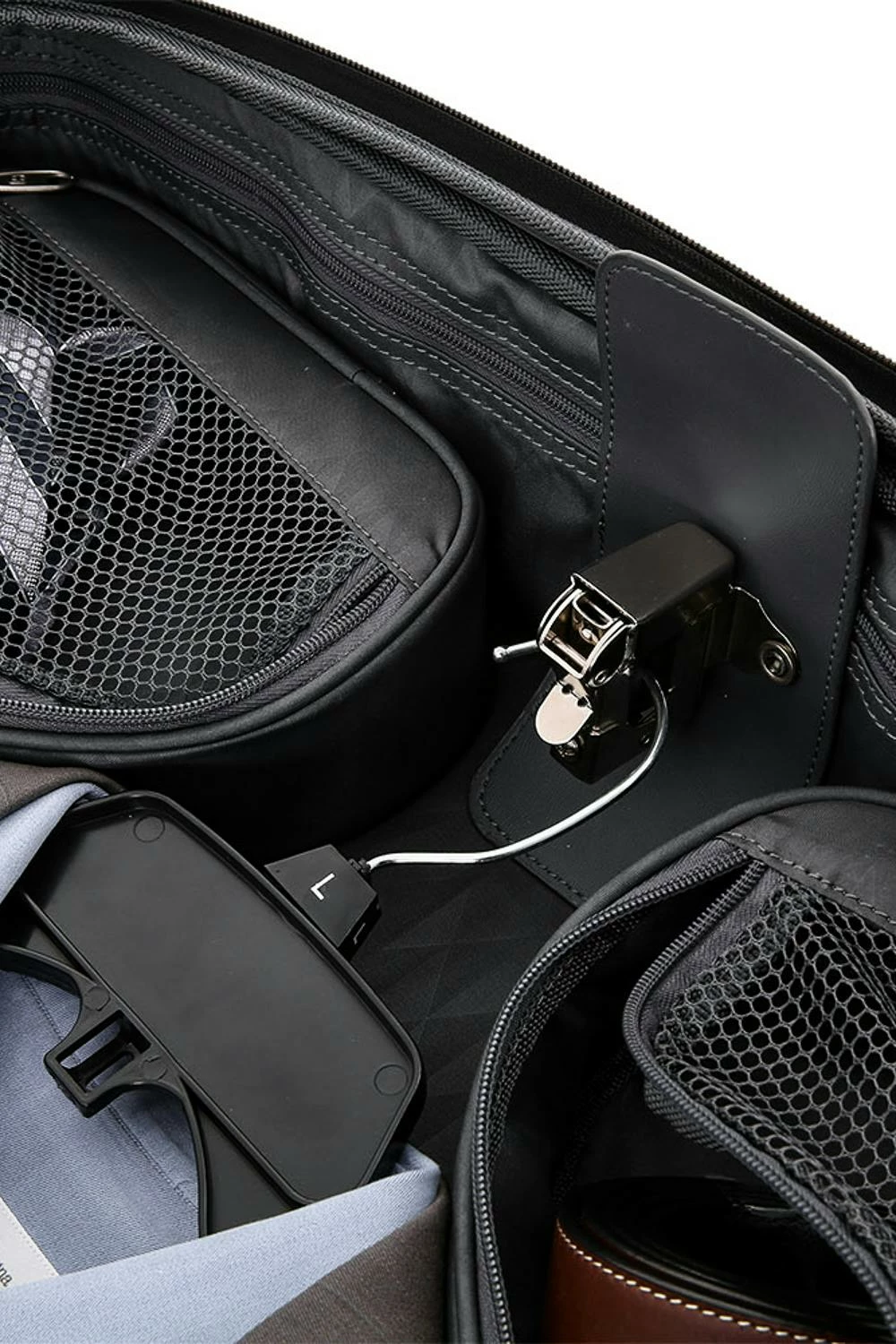 A built-in wet bag separates soiled clothes from the clean while several smaller pouches provide enough space for various items – from ID cards and phone chargers to belts and ties.