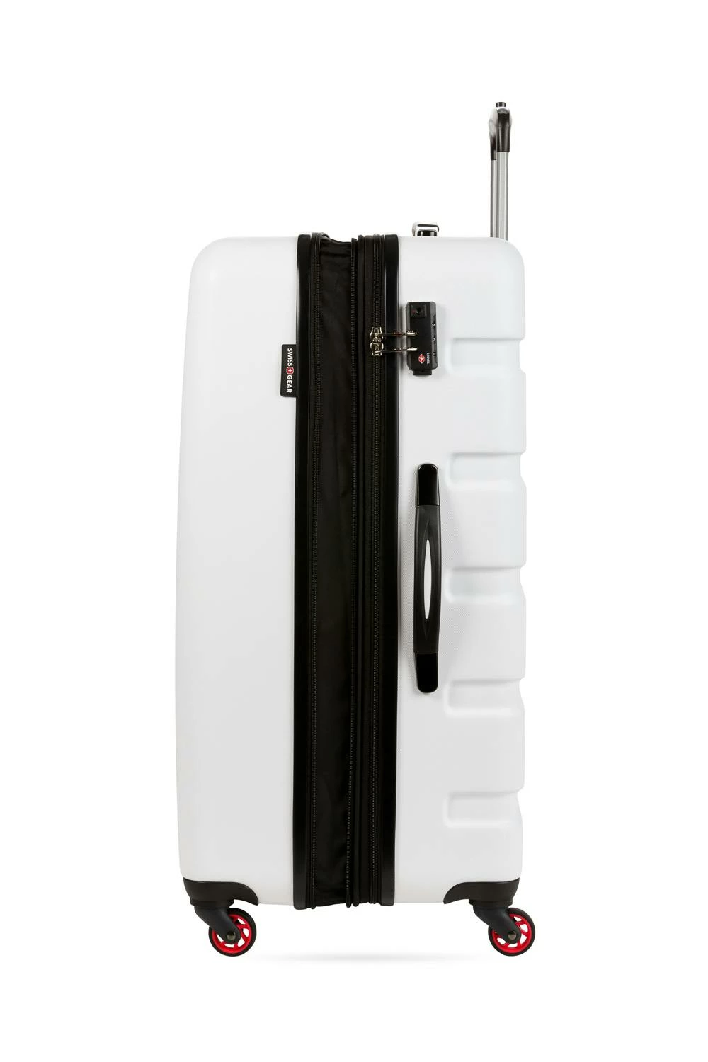 Travel in style with the Swissgear 7366 Expandable Hardside Luggage Set. Both modern and utilitarian, its lustrous metal zippers and rugged construction exemplify its long-lasting quality. The set contains the 18” Carry-On, 23” and a 27″ Expandable Hardside Luggage. Its almost indestructible split case opens to display the main compartment equipped with tie-down clothing straps, a roomy zippered lid pocket, and a large zippered packing pocket to keep your travel-sized essentials separate from your clothes.