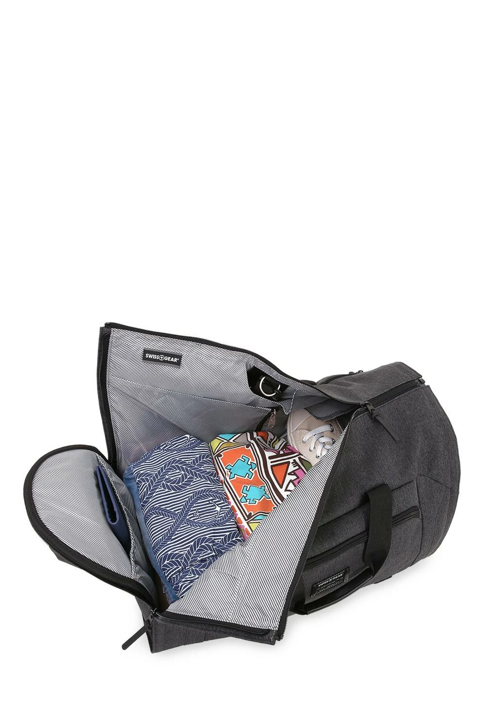 The Swissgear 20″ Getaway Everything Duffel Bag combines the functionality of a garment bag with the portability and simple elegance of a luxury duffel bag. This sporty and lightweight bag provides versatility with a unique style. Made for the jet-setter, the weekend getaway-er, the overnighter, the corporate takeover-er & the startup entrepreneur, this bag offers a sleeker profile with smarter functionality and easier mobility.