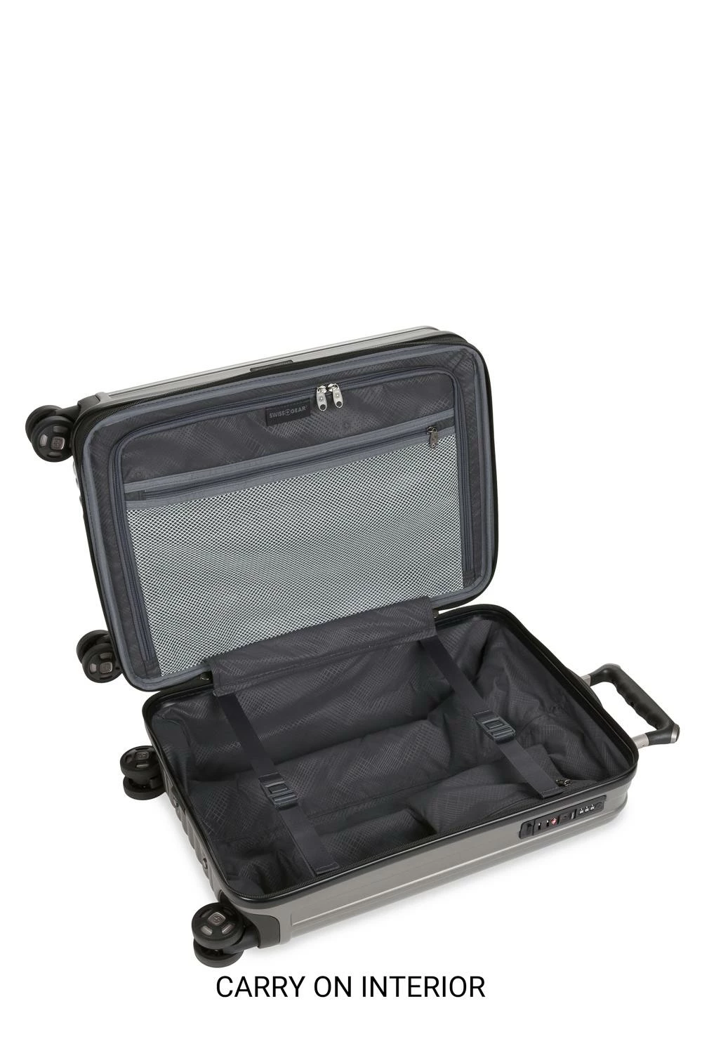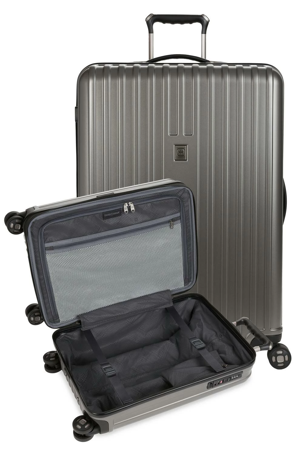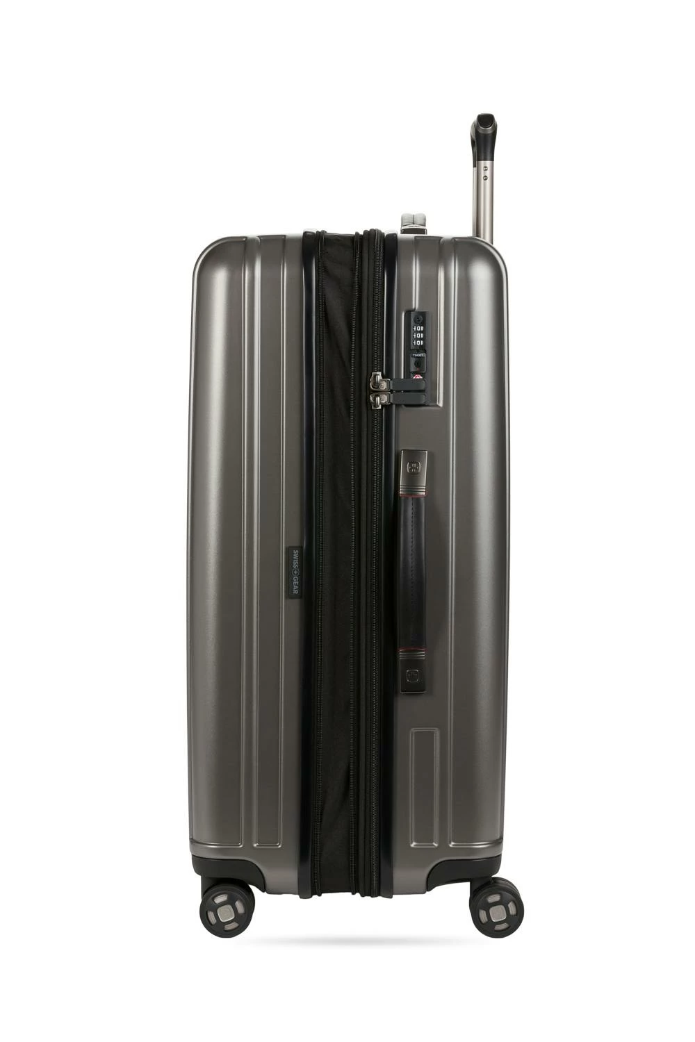 Traveling has never been such a pleasure. Introducing the Swissgear 7910 Expandable 2pc Hardside Luggage Set. Made of an extremely durable molded polycarbonate hardshell in a brushed satin finish texture, this collection is comprised of a 20” carry-on, and a 27” checked spinner. Featuring a large oversize main zipper, a low-profile TSA-accepted combination lock, fabric wrapped lift handles, and eight multi-directional spinner wheels, this luggage also comes equipped with a twin push button locking retractable handle for the ultimate in convenience for both left and right-handed users.