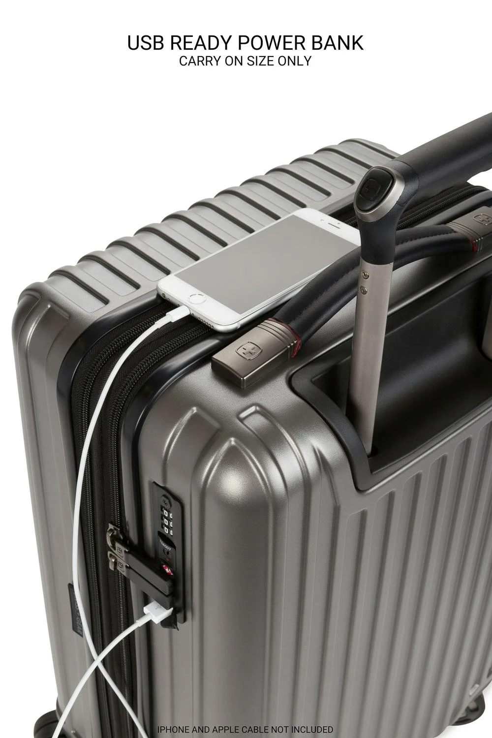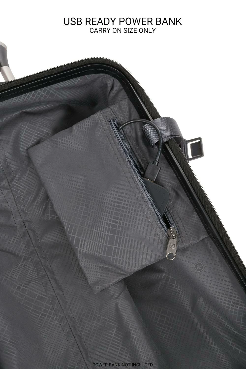 Constructed using an expandable split-case design for naturally superior packing organization, this luggage also features a rich, fully lined interior, adjustable clothing tie-down straps, a zippered divider panel with a built-in flat packing pocket, and an integrated USB port that connects to an internal portable power bank that can charge your smartphone and other electronics when you’re on the go (20” spinner only; battery pack NOT INCLUDED).