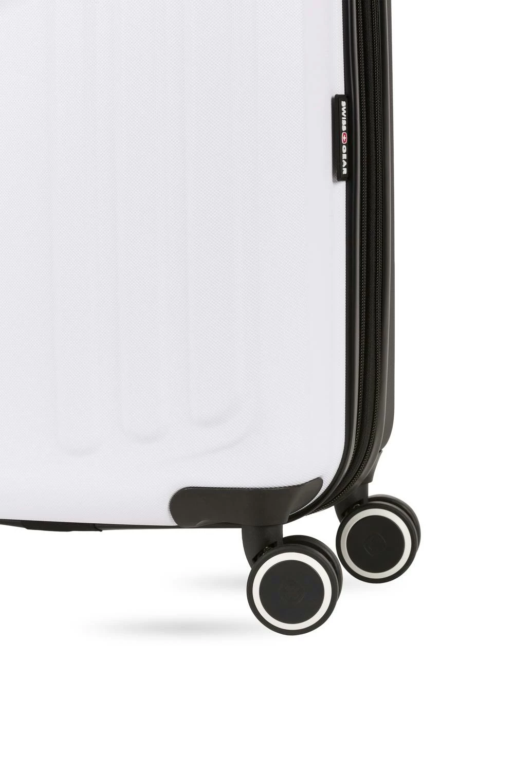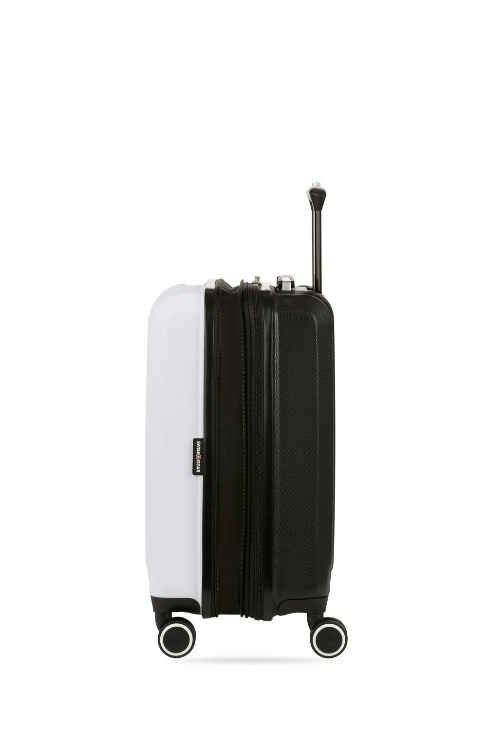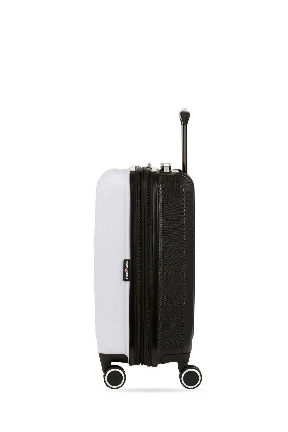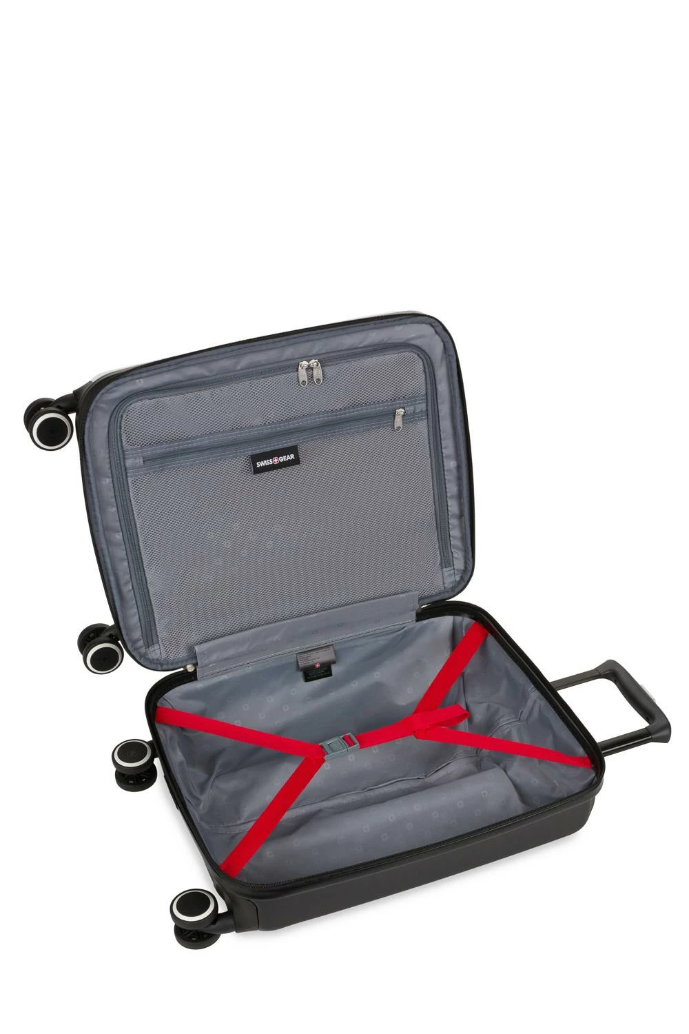 Make your next journey effortless with the Swissgear 8028 19″ Hardside Spinner Carry-On. Featuring unique contrasting colors to make spotting it on airport conveyer belts easier, this carry-on suitcase is constructed with an ABS hardshell and eight 360-degree multi-directional spinner wheels for maximum maneuverability. Plus, with two inches of expansion built in and a zippered interior divider panel with large mesh pocket plus adjustable web tie-down straps, staying organized is a breeze.