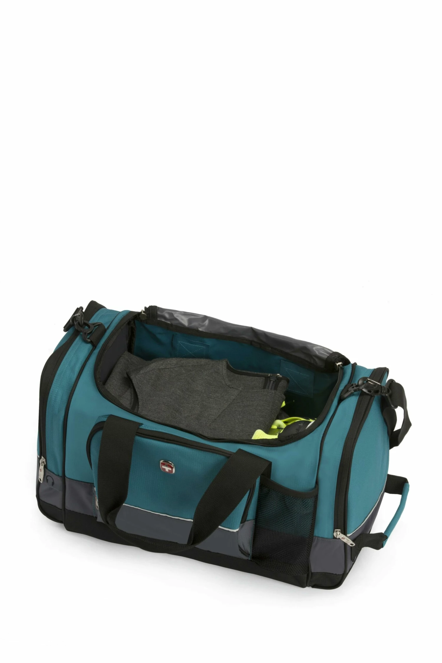 Engineered for versatility and velocity, the Swissgear 9000 20” Apex Duffel Bag – Poly Collection is a necessity. Made from 100% rugged polyester, It features a spacious main compartment, two large zip pockets, and a front pocket. Stuff your workout clothes, travel gear, and toiletries inside its interior and stay hydrated as your canteen rests inside a mesh water bottle pocket.