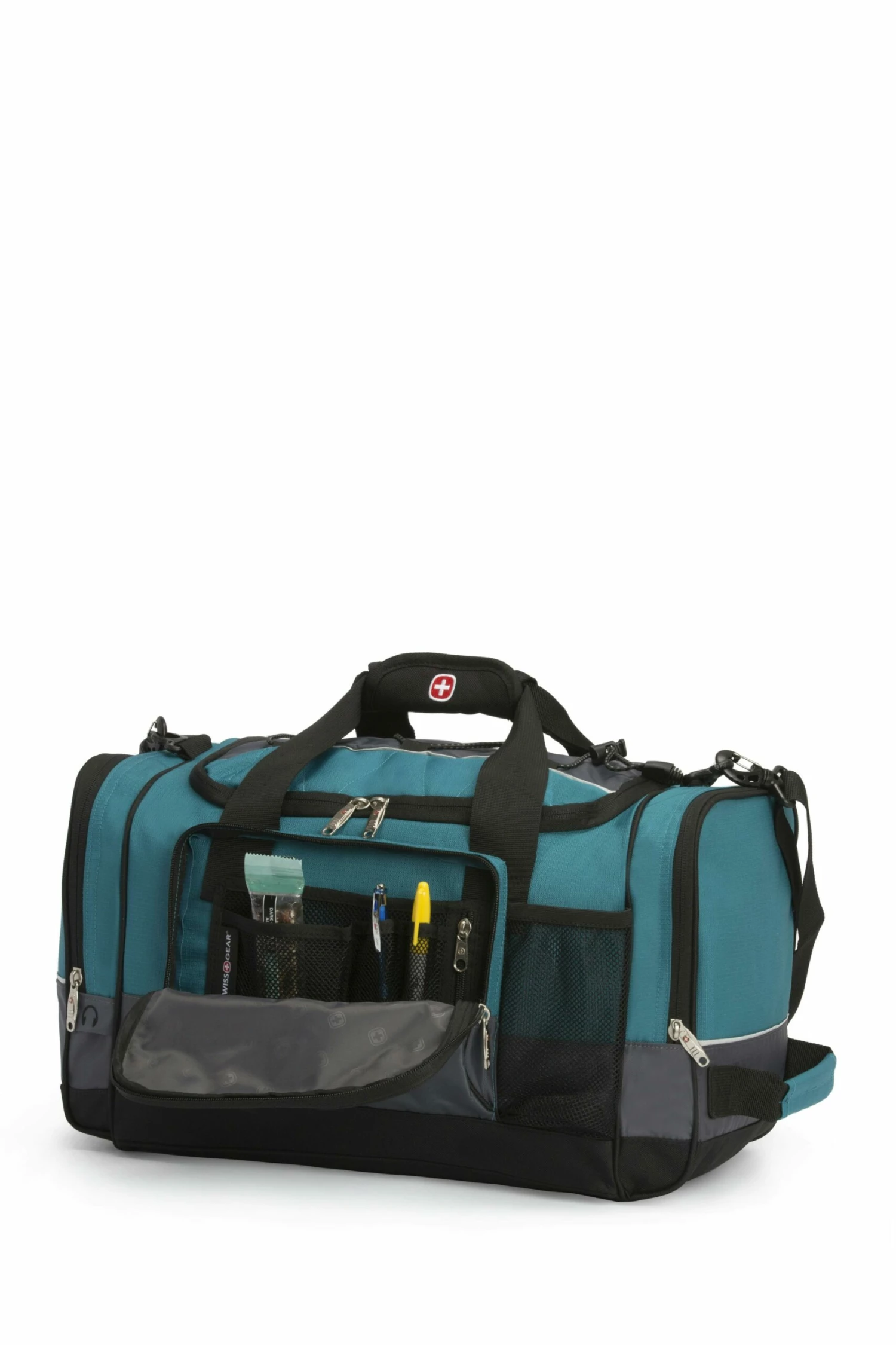 Engineered for versatility and velocity, the Swissgear 9000 20” Duffel bag – Sport Collection is a necessity. Made from 100% polyester, its rugged construct features a spacious main compartment, two large zip pockets, and a front pocket. Stuff your workout clothes, travel gear, and toiletries inside its interior and stay hydrated as your canteen rests inside a mesh water bottle pocket.