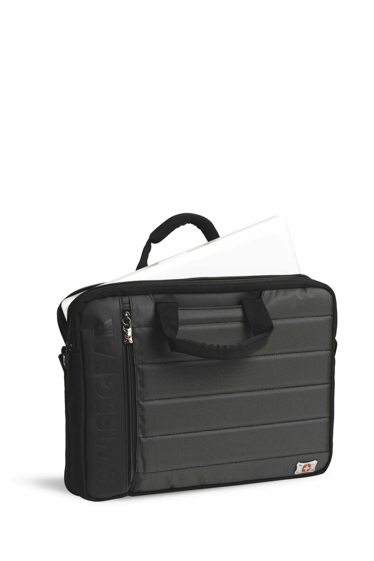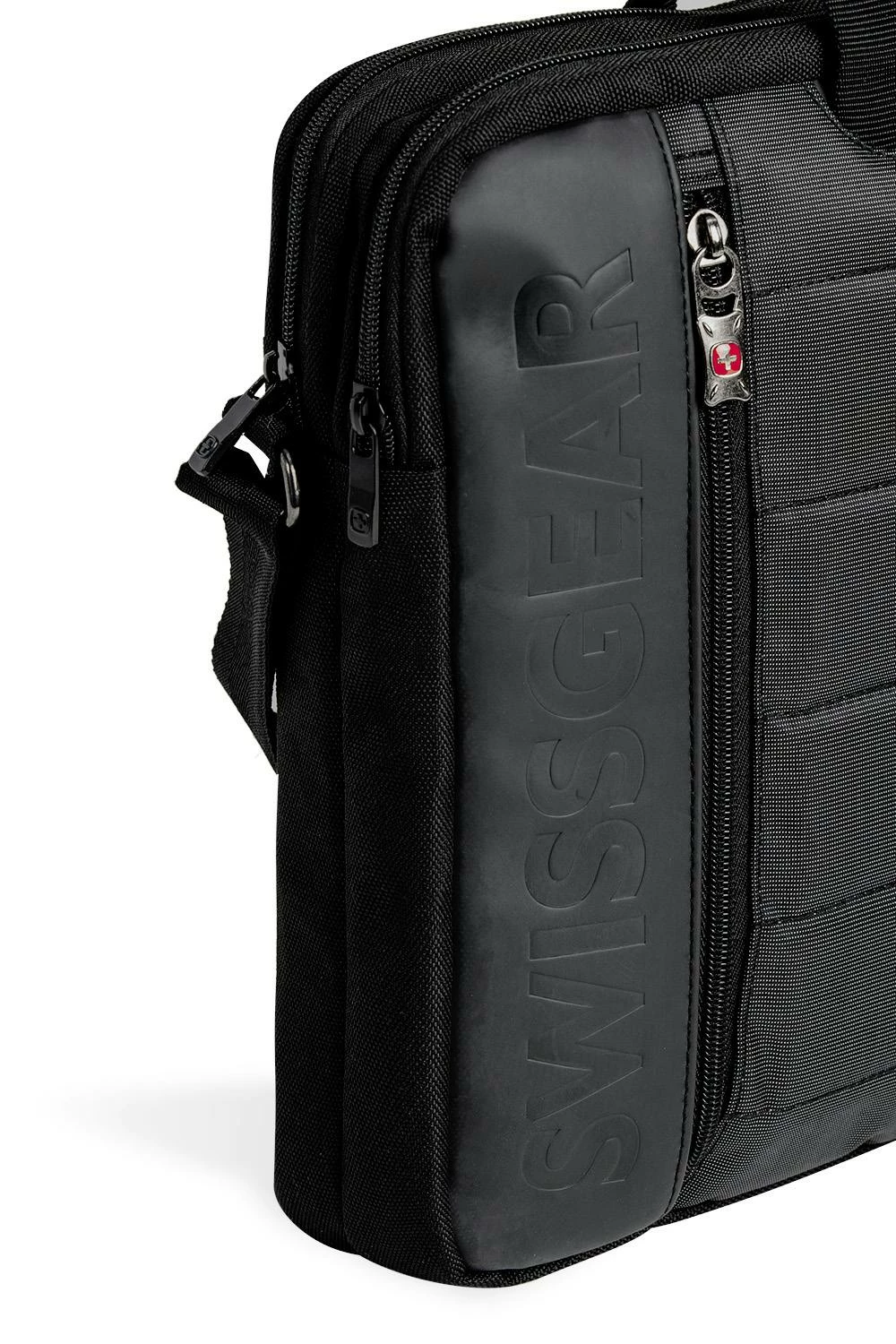 Streamlined with versatility, grab its padded handles or sling its adjustable strap around your shoulders. An add-a-bag strap lets you conveniently attach this case to your favorite spinner. Complete with an emblazoned SWISSGEAR logo, rely on this bag to transport your office or campus essentials.