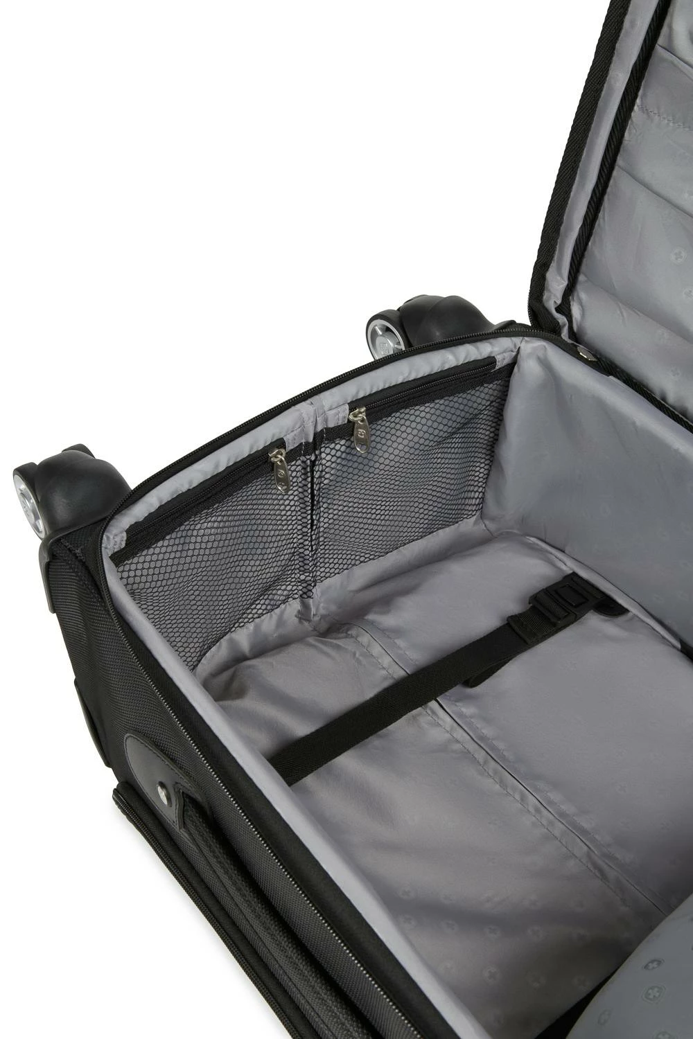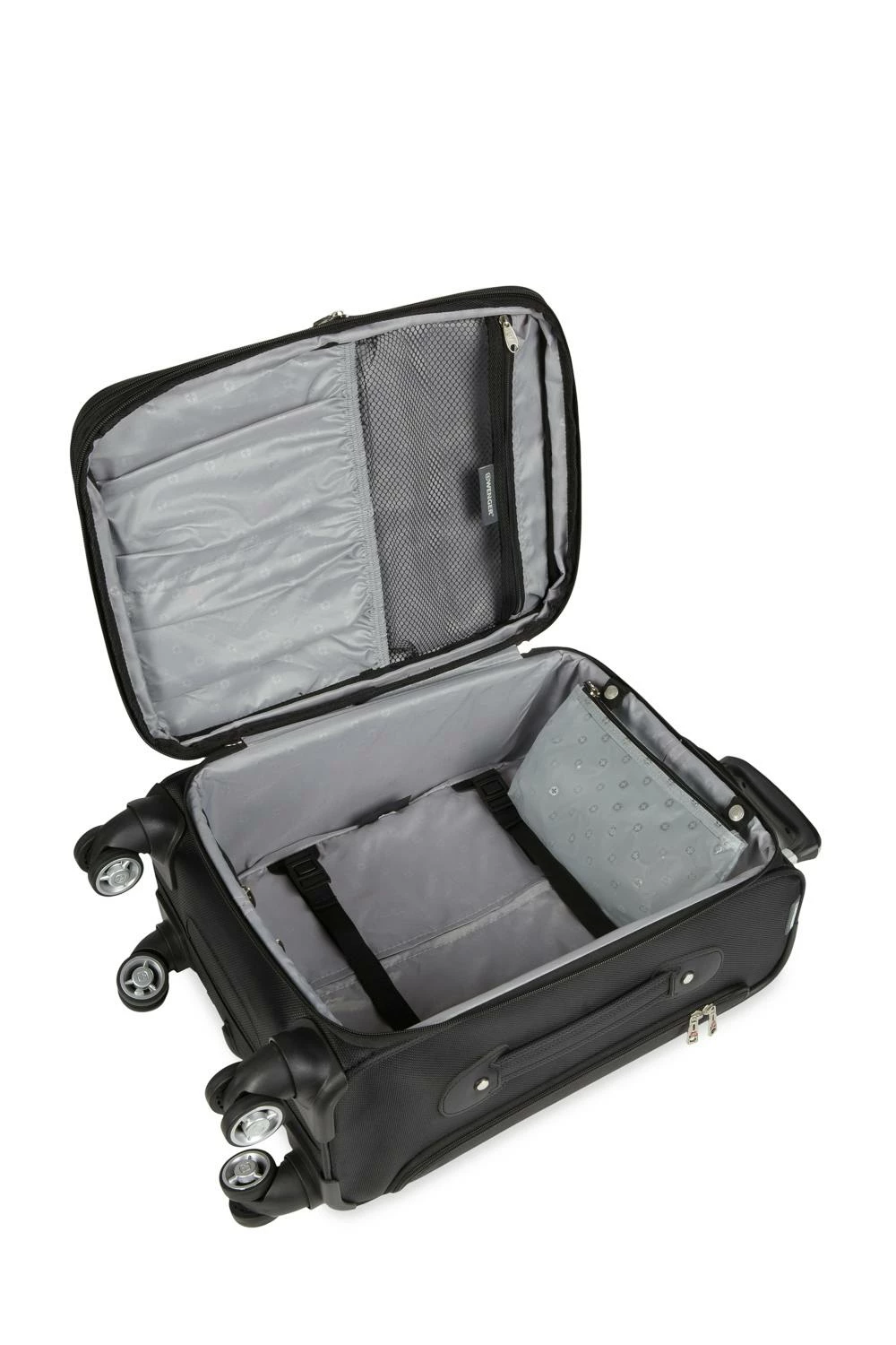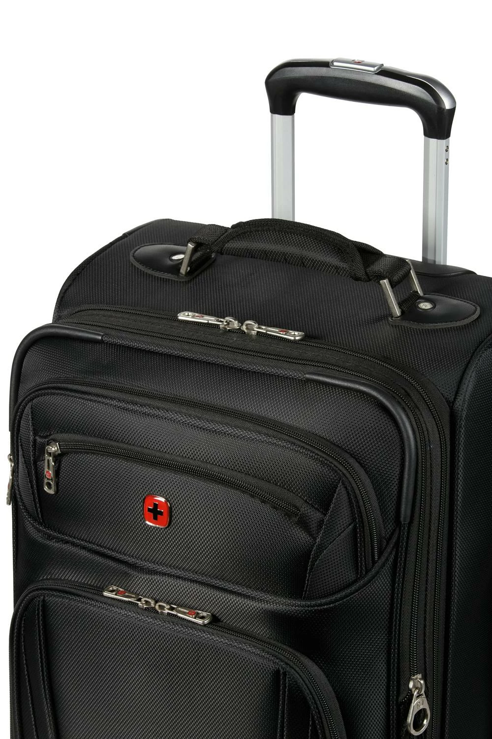 Expand your horizons – and your luggage, with the Wenger Identity Expandable Carry On Spinner. This soft-sided carry on suitcase expands when needed to increase packing capacity and keeps you organized with lots of pockets, inside and out. A padded laptop pocket is uniquely accessible from an external side zipper for ultimate convenience. A large, zippered, exterior front pocket has a built-in divider for files, books, paperwork, or even a sweater, and medium and small zippered front pockets provide extra space and quick access to often-used items.