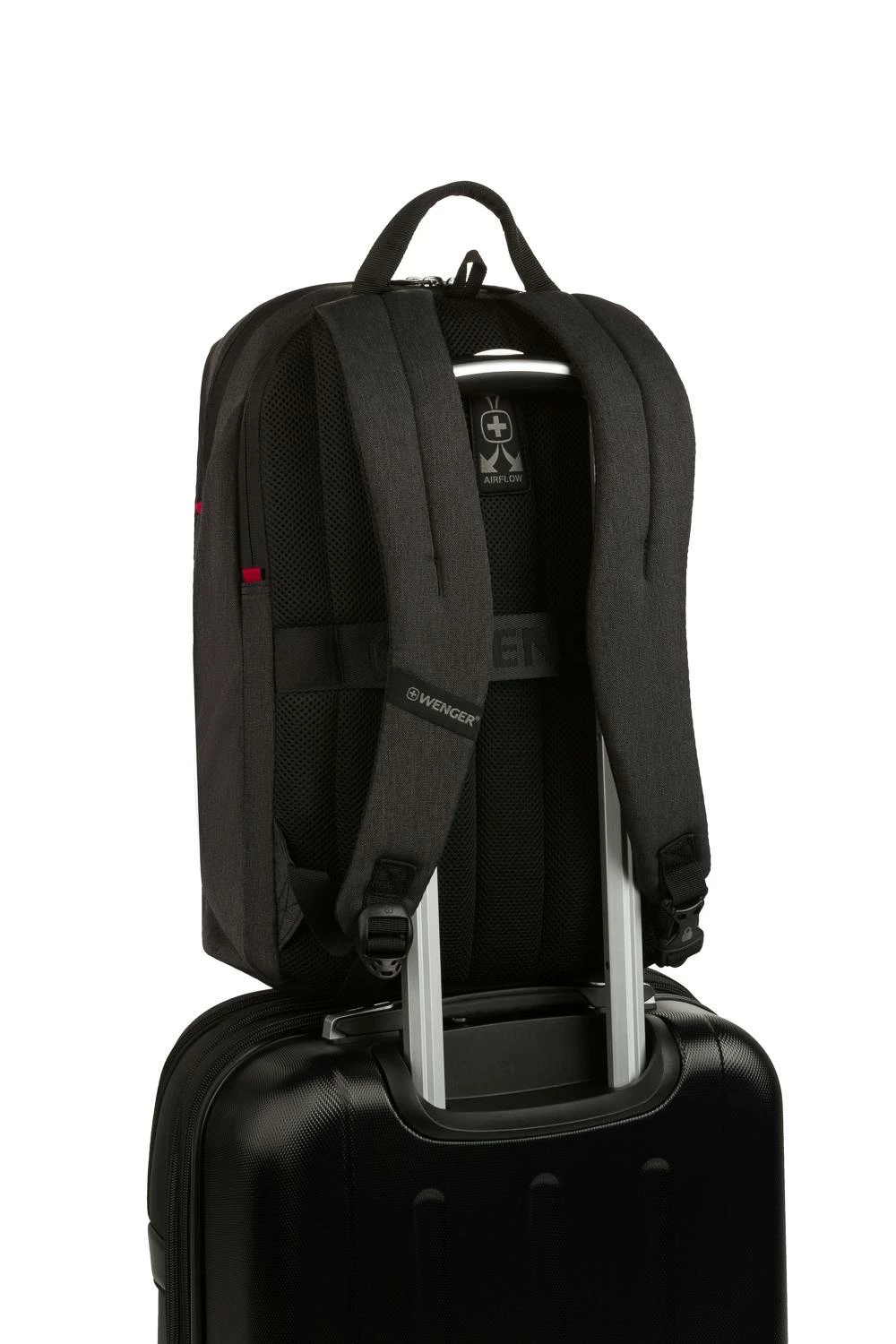 Light on weight with heavy-duty performance features, the Wenger MX Light Laptop Backpack keeps you comfortable, organized, and on the go from home to work or school and everywhere in between. Plus, the zippers on this backpack are coated to repel water and reverse set for added moisture resistance, so even weather won’t slow you down.